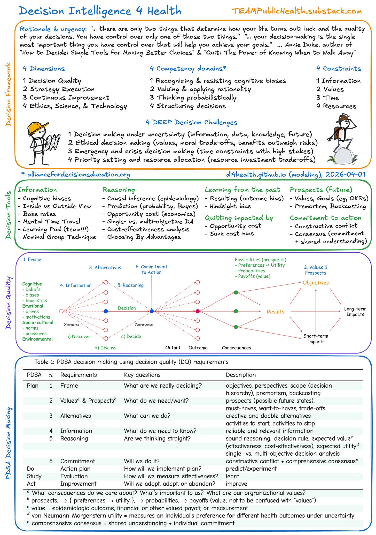 Decision Intelligence 4 Health (DI4H) is using ethics, science, and technology to improve strategic health decisions in the face of uncertainty, trade-offs, and time constraints. I prioritize improving human decision-making capabilities.