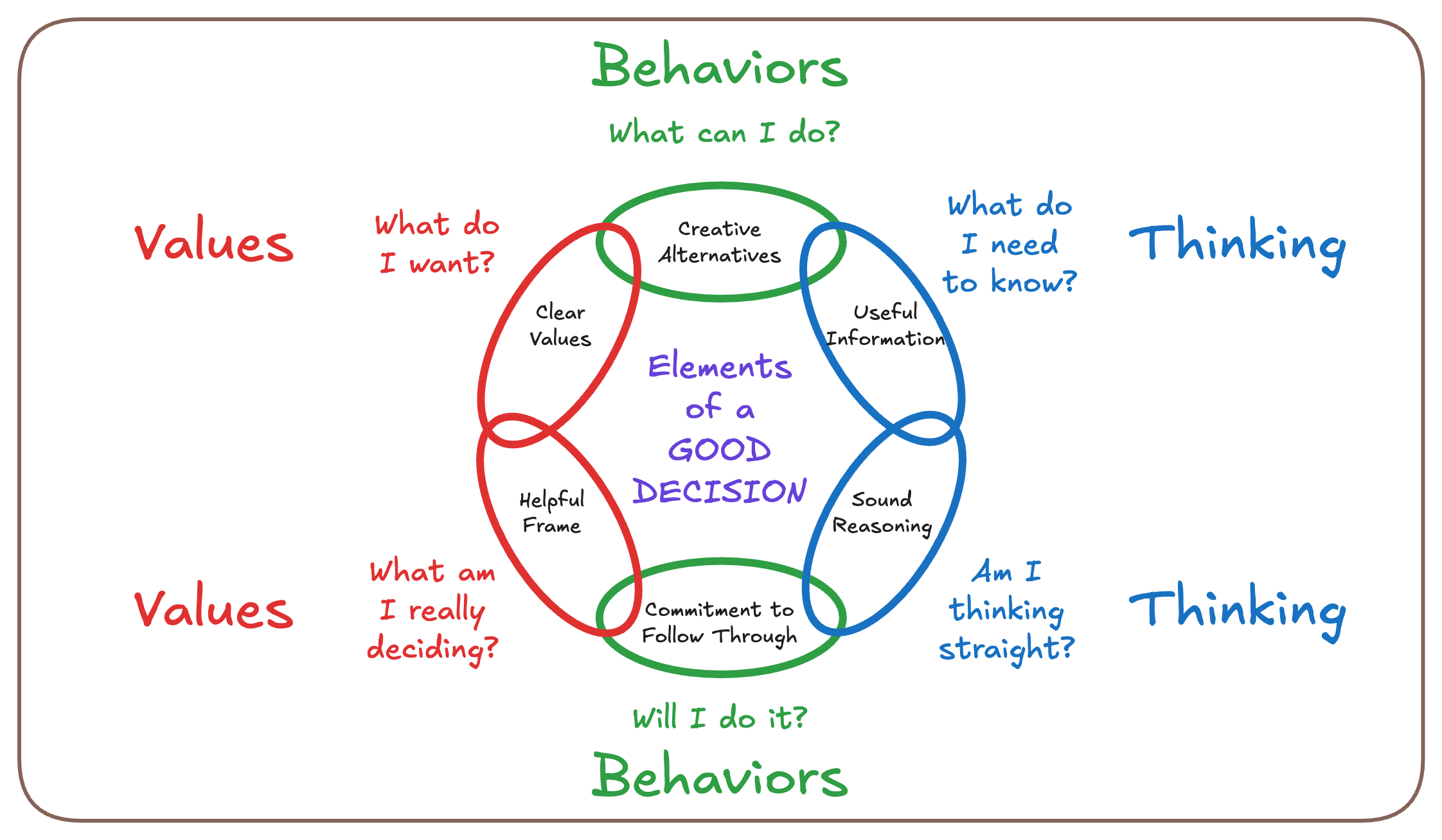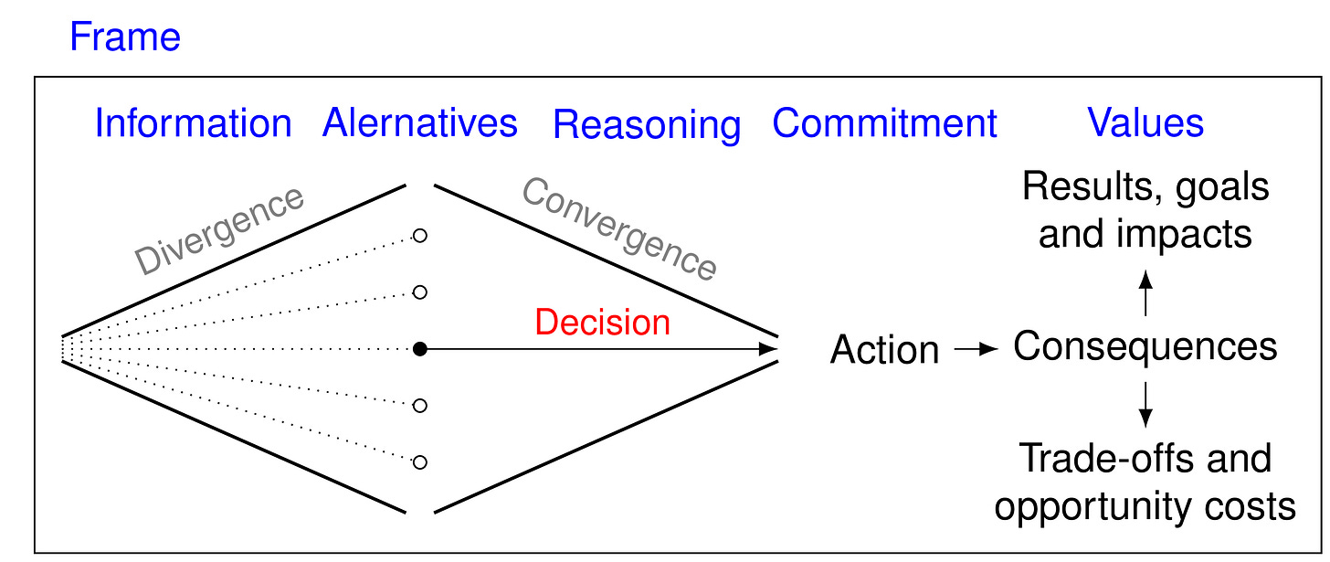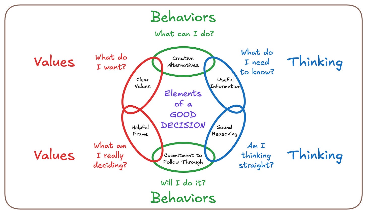 The elements of decision quality are always applied within a strategy execution or continuous improvement framework. I recommend starting with PDSA.
