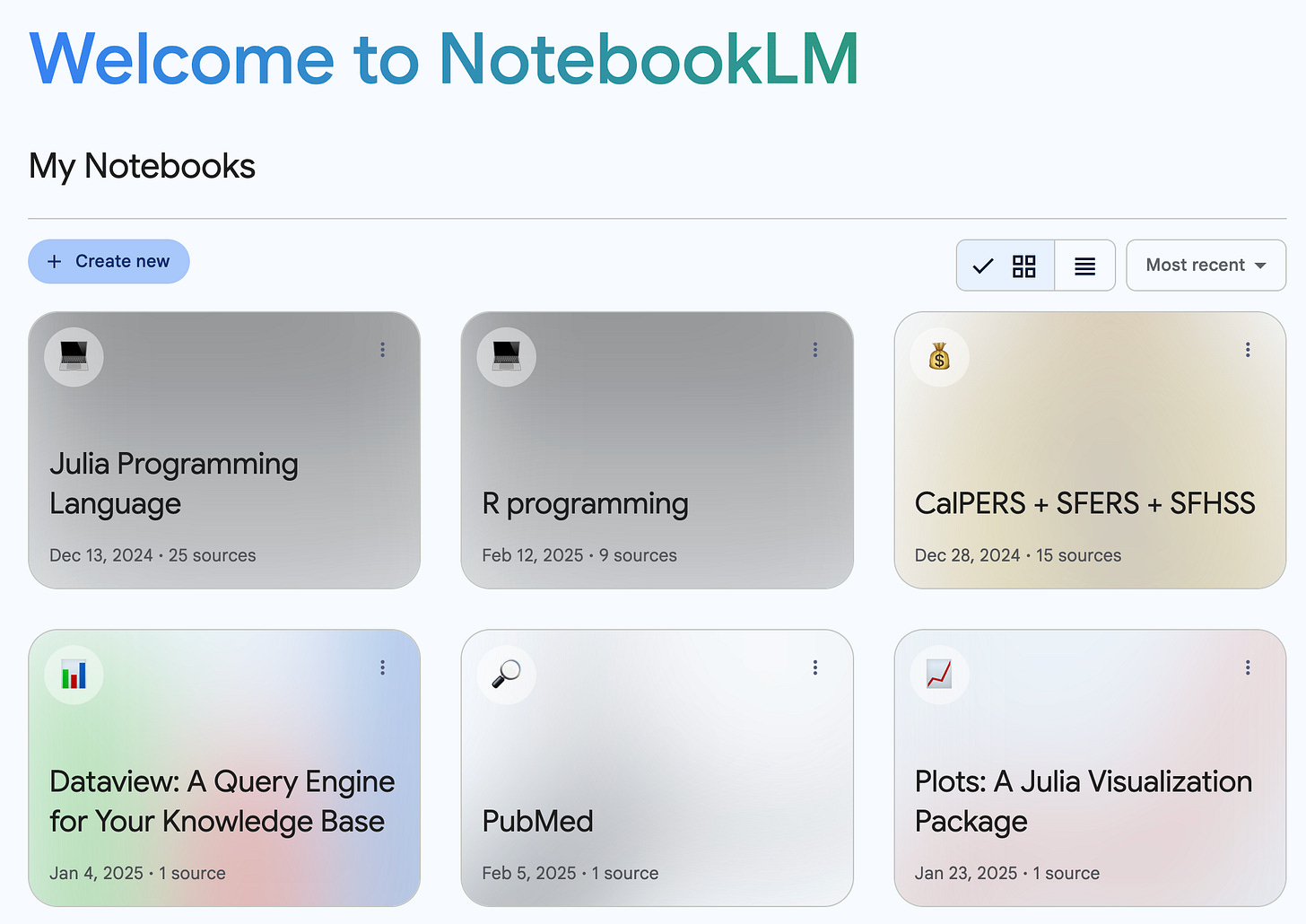 When you query a large language model (LLM) such as ChatGPT or Gemini, they provide responses based on data sources that they have selected. The sources may not be the most authoritative and best sources to answer your questions. An alternative approach is for you to select the authoritative sources you trust and have the LLM train on them. It might be a eBook, website, video, or audio source. Here are some of the Notebooks I have created for my work: